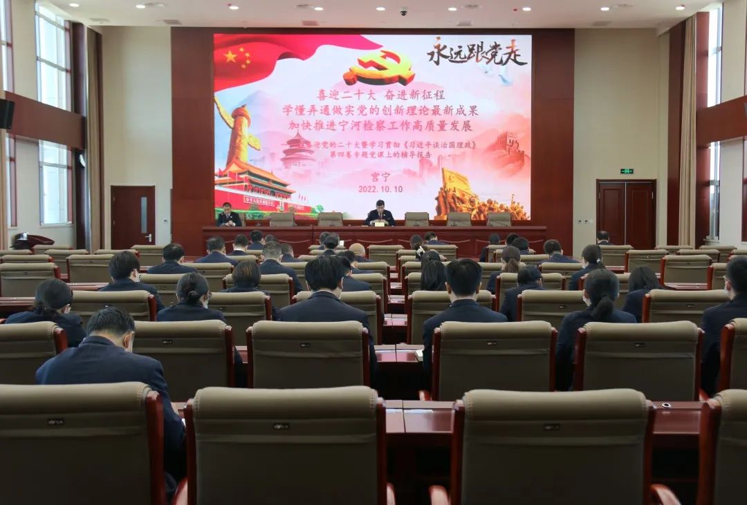 会上,宫宁同志以“喜迎二十大 奋进新征程 学懂弄通做实党的创新理论成果 加快推进365平台被黑_bt365体育官网育_365bet体育在线比分检察工作高质量发展”为题,从领会重大意义、厘清总体框架、交流启示收获等多个维度与党员干警进行共同探讨,并紧密结合365平台被黑_bt365体育官网育_365bet体育在线比分检察工作实际对有关推进全面依法治国的重要内容作了重点解读。
