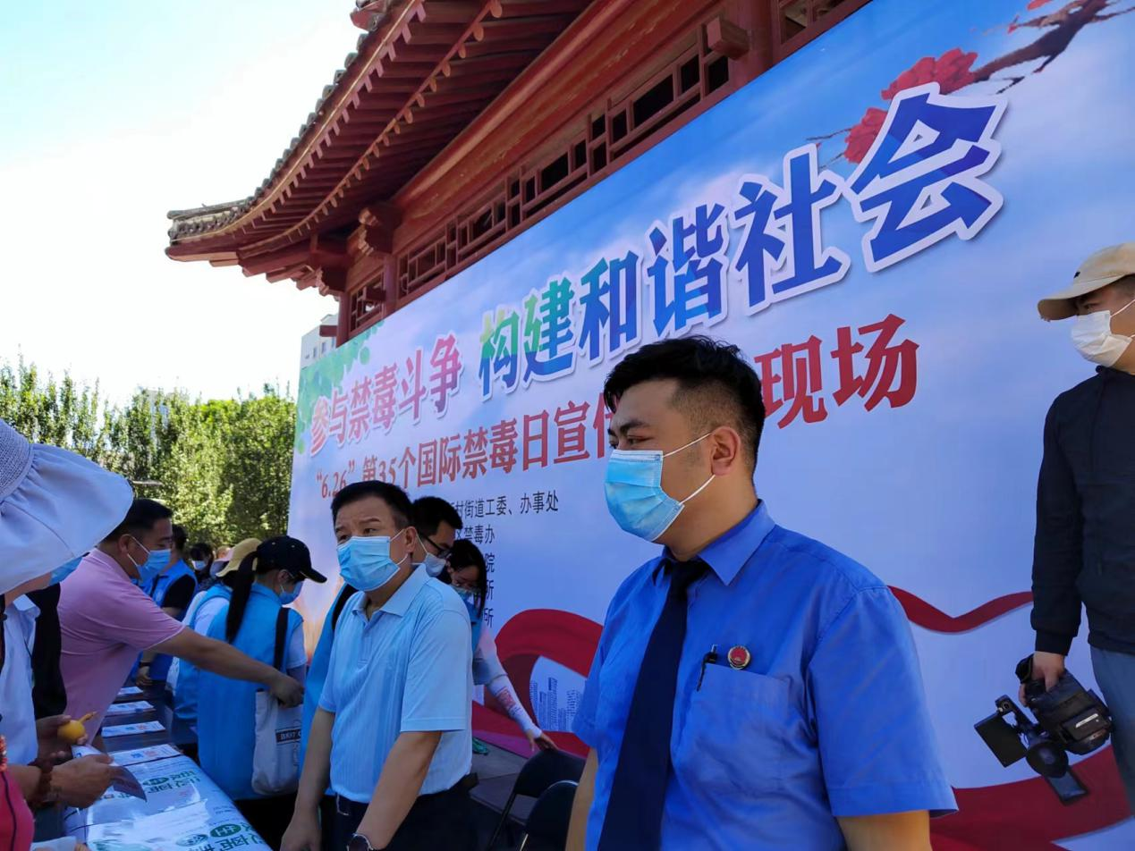 为做好2022年“第35个国际禁毒日”宣传教育工作,切实提高群众识毒、拒毒意识,营造人人识毒、防毒、禁毒的社会氛围,滨海新区人民检察院联合新村街道、新区禁毒办、新区公安局等单位在新村街中心北路“小树林”广场开展以“健康人生,绿色无毒”为主题的宣传活动。