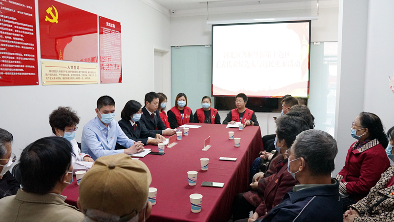 10月26日下午,院党组书记王瑞娟作为区人大代表正式候选人,到河北区鸿顺里街第十选区参加正式代表候选人与部分选民见面会。按照选举工作要求,院政治部负责人向参会选民介绍了王瑞娟同志的基本情况和工作经历。