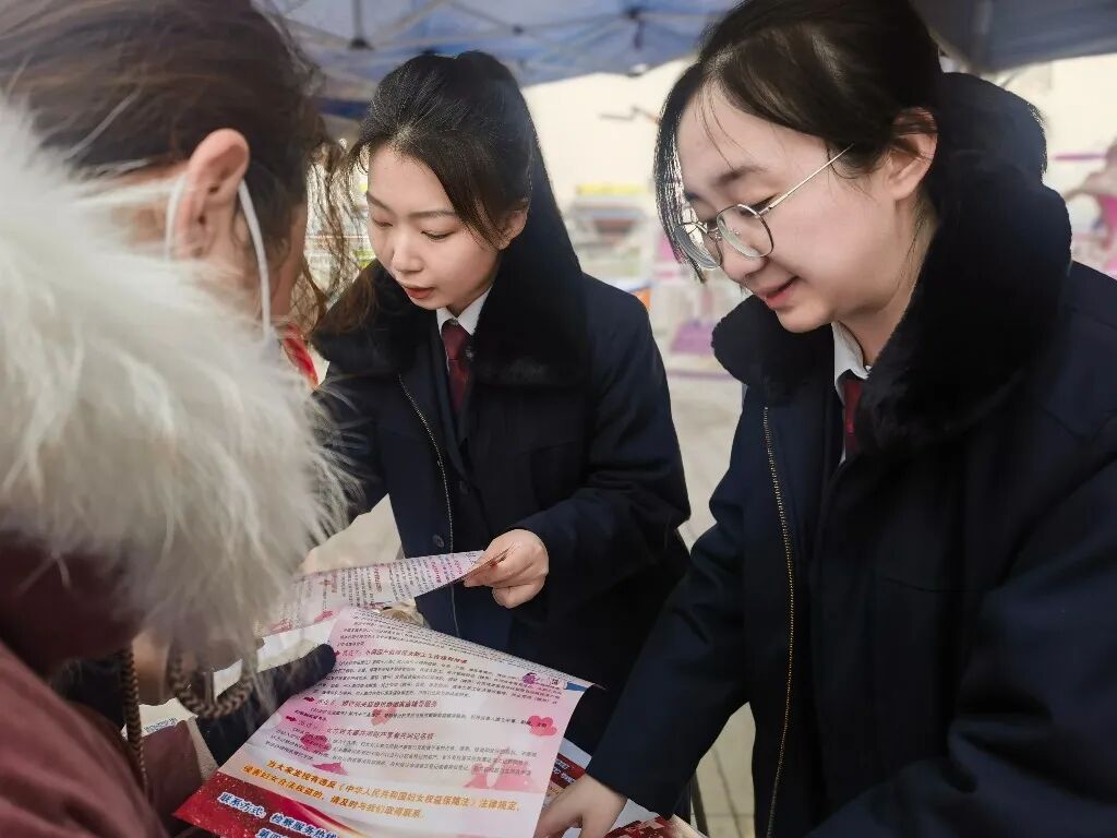 这是365平台被黑_bt365体育官网育_365bet体育在线比分区人民检察院联合区妇联,在吾悦广场春风行动招聘会上向现场有求职意向的女性求职者宣传新修订的《妇女权益保障法》的情形。