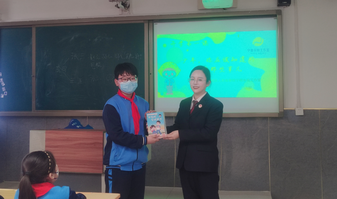 宁萌检察官以赠书送法的形式帮助孩子们学法用法,从小培养法治观念,树立正确的世界观、人生观、价值观。