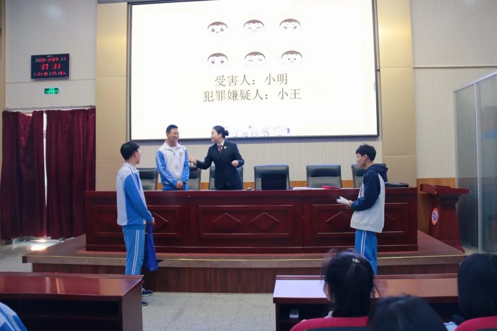 模拟案件、模拟讯问、模拟侦查......同学们直呼这节普法课像一次讲程序,讲法律的“剧本杀”,大家都兴致盎然。
